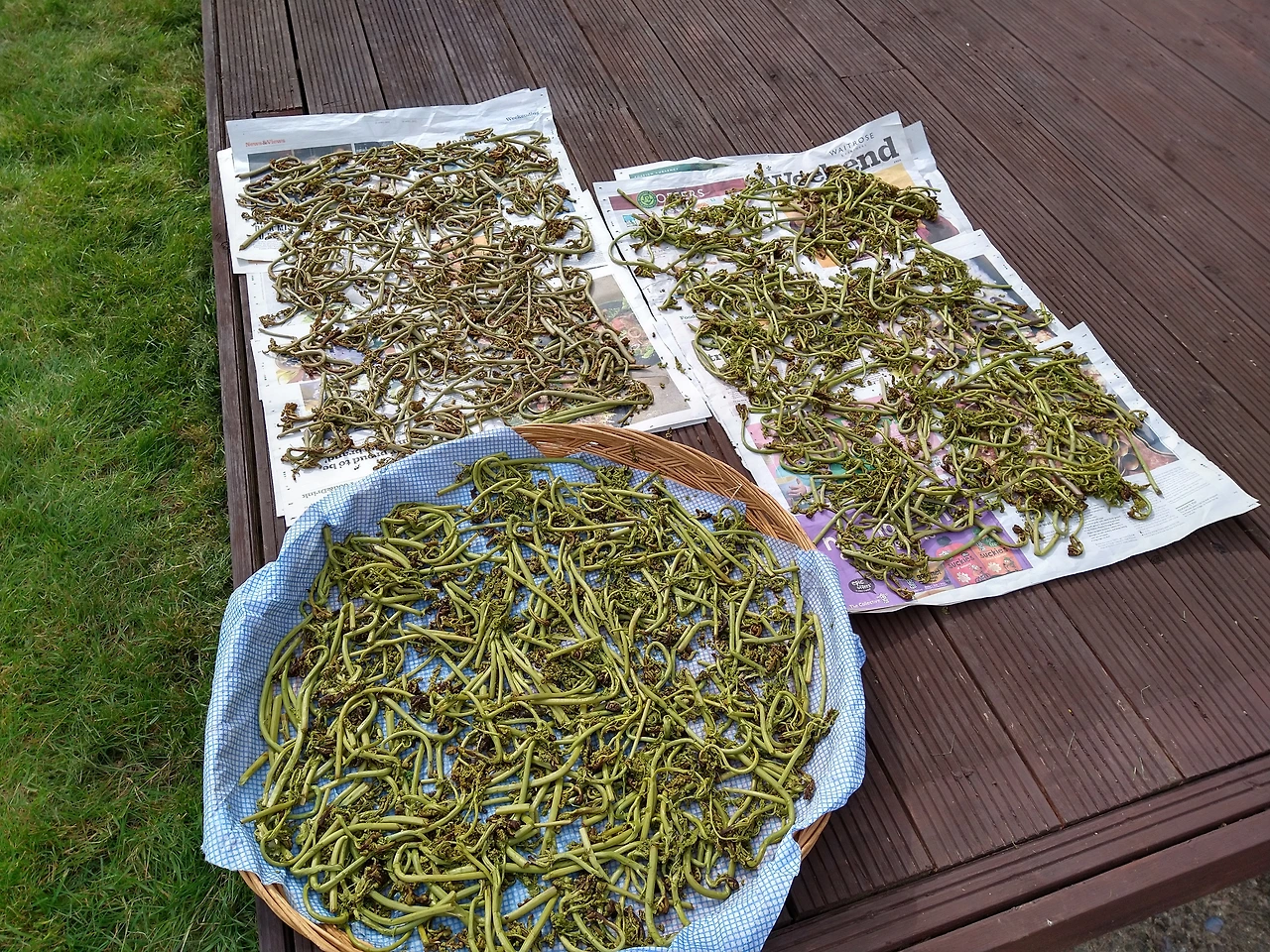 남편과 지난주 토요일에 영국에 와서 처음으로 고사리를 꺾어 왔다. 남편이 고사리에 별 흥미를 보이지 않아서 가만히 공원에서 책이나 보며 앉아있으라고 했다. 커피도 내려가겠다고 꼬셨더니 바로 넘어갔다. 고사리를 뜯으러 가서 짧은 시간 한 가방 뜯어 왔는데... 삶아서 말리려고 하는데 날씨가 도와주질 않아 모두 곰팡이가 나서 버리게 되었다. 며칠을 수고롭게 밖에 내놓고 들여놓고를 반복했던 소중한 고사리! 인터넷에 찾아보니 날이 흐릴 땐 걷어서 냉장고에 두었다가 날이 좋은 날 하루에 말려버리라고 한다. 좋은 정보다. 실패는 배움의 기회로 인도한다. 곰팡이 나서 버린 고사리가 아깝지만 다음번 고사리는 절대로 곰팡이 나게 내버려 두지 않을 테니 말이다.