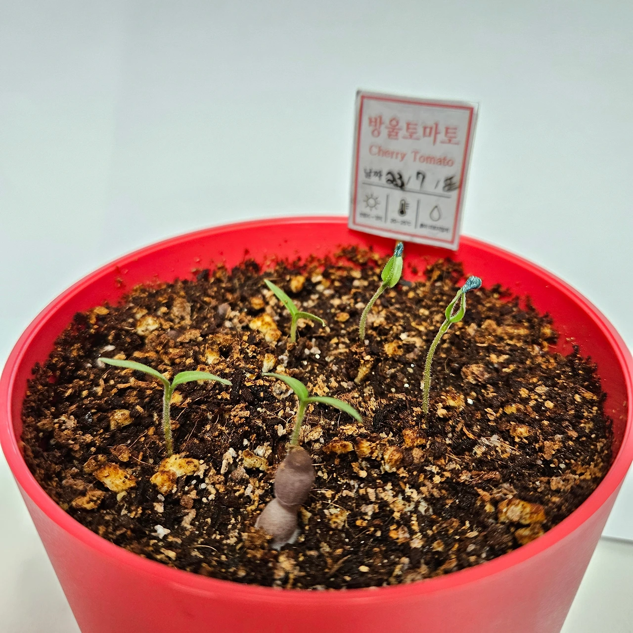며칠 뒤 다이소매장에서 식물 키우기 코너 앞에 걸음을 멈춘 건 은봉이 뿐만이 아니었다. 방울이 하나를 나눠 먹고 입맛을 제대로 다신 우리, 그리고 수확의 기쁨을 함께 느껴버린 우리는 누가 먼저랄 것도 없이 씨앗재배키트에 거침없이 손을 뻗었다.