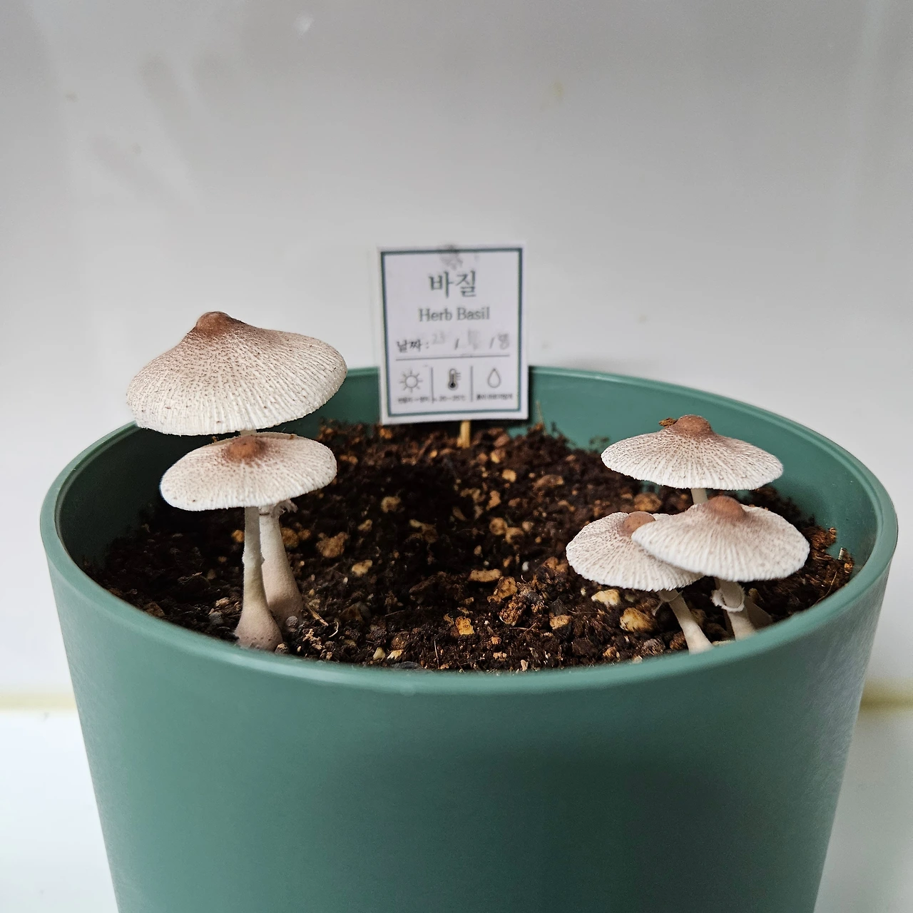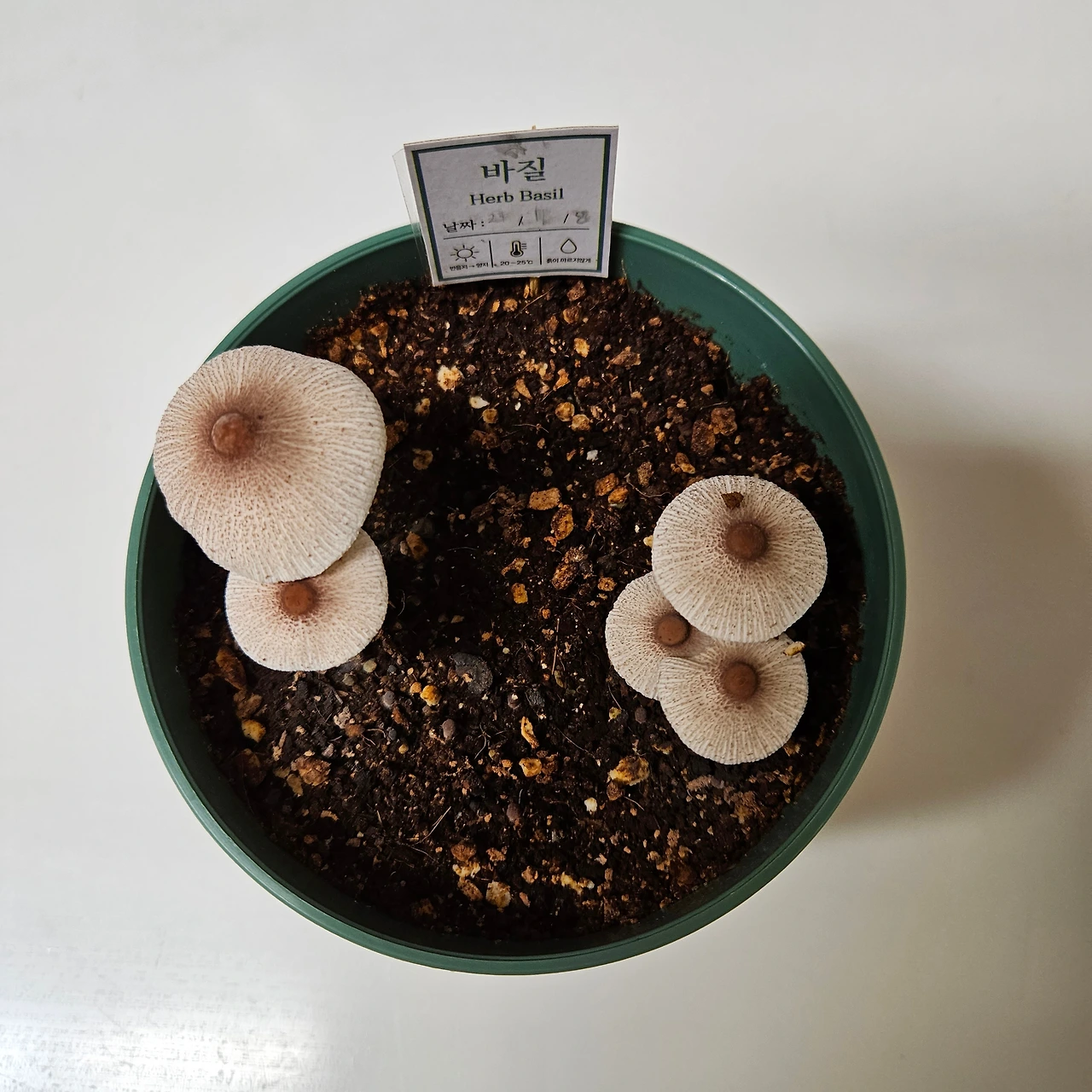 콩 심은 데 콩 나고 팥 심은 데 팥 나는 법. 바질 심은 곳에서도 당연히 바질 싹이 나야 하는 법인데 기다리던 바질의 싹은 나올 기미도 보이지 않고, 바질 대신 뜬금없이 나타난 것은 버섯이었다.
