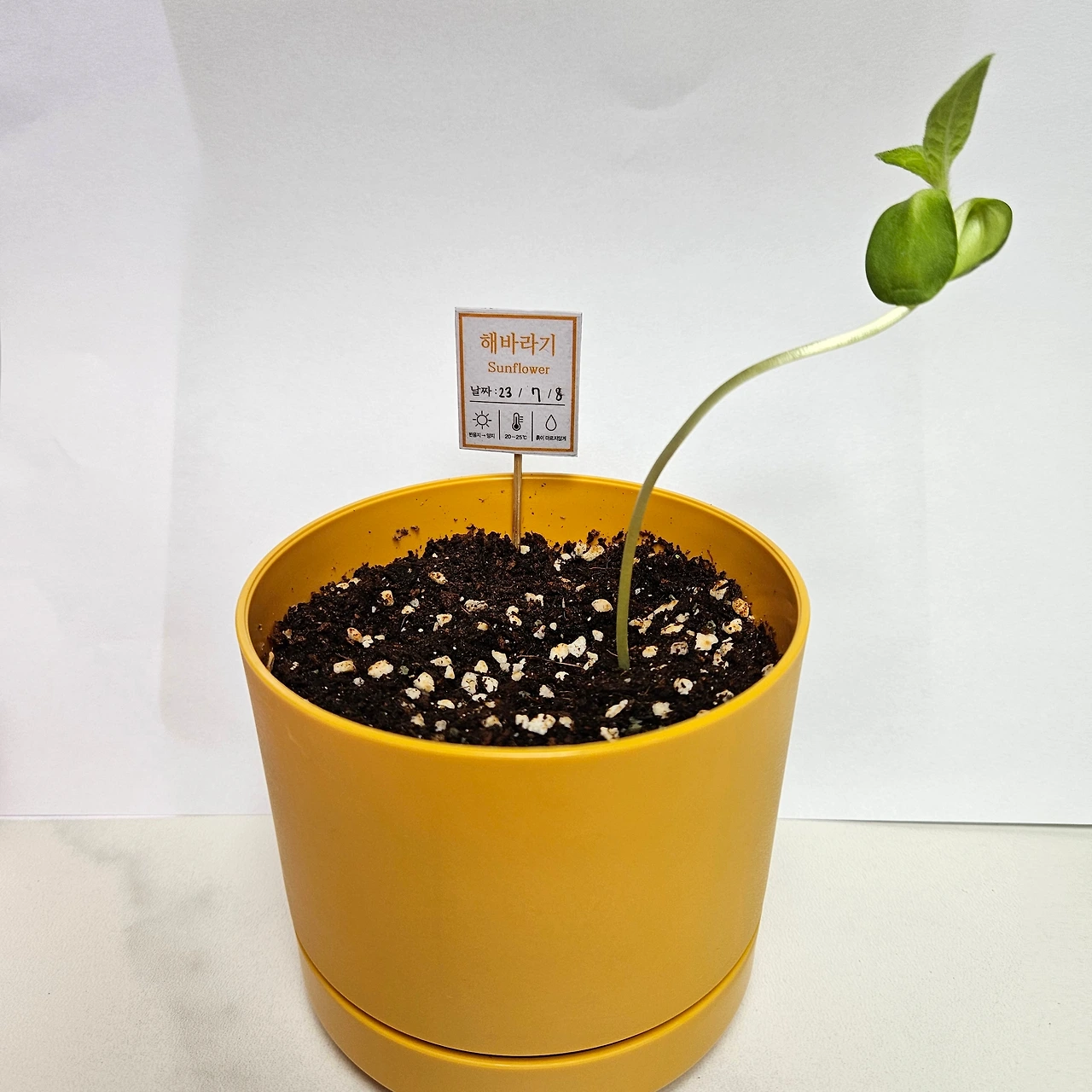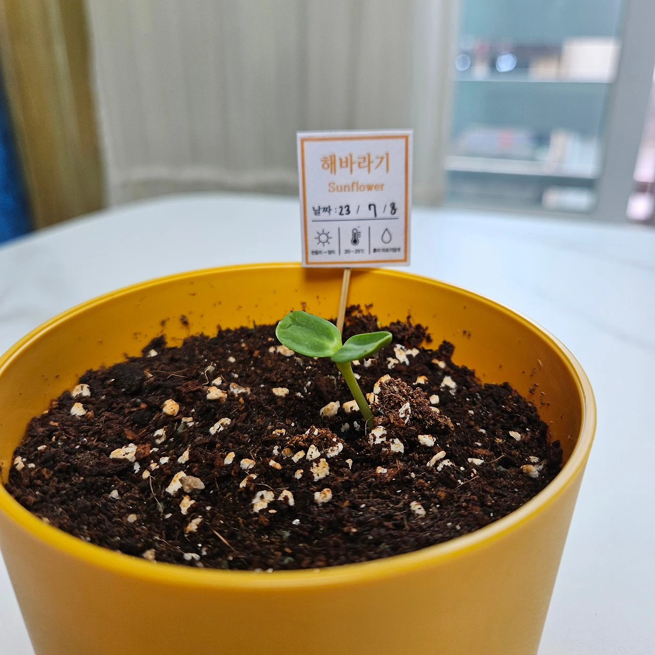 씨앗 심은지 13일 차. 비교적 큼직한 해바라기 씨앗 2개 중에 한 개의 씨앗에서만 발아를 했다. 본인의 자태를 태생부터 알고 존재감을 뿜어내듯이 하루가 다르게 쑥쑥 자랐다.