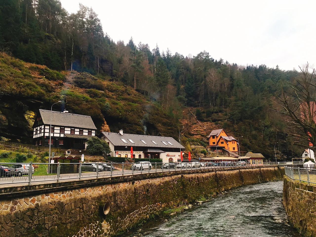 Hrensko에서 저녁 식사를 하고, 벽난로에 붙어 앉아 몸을 녹인 후, 버스 시간에 맞춰 나왔다.