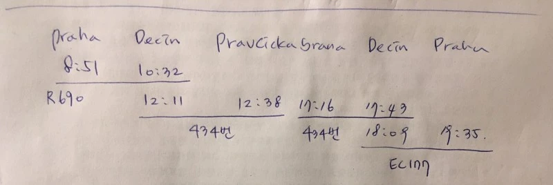 나와 아이들 각자의 소지품에 에너지바, 양말, 물 등을 챙기고, 만약의 경우를 대비해 1박을 할 짐까지 내 가방에 넣은 후 아침 일찍 프라하 중앙역으로 가서 기차를 탔다. pubtran이라는 대중교통 앱이 너무 잘 되어 있어서 기차와 지역 버스를 연결하는 계획까지 무리 없이 짤 수 있었다. 단, 현지 상황을 잘 모르니, 시간을 넉넉하게 잡고 움직였다.