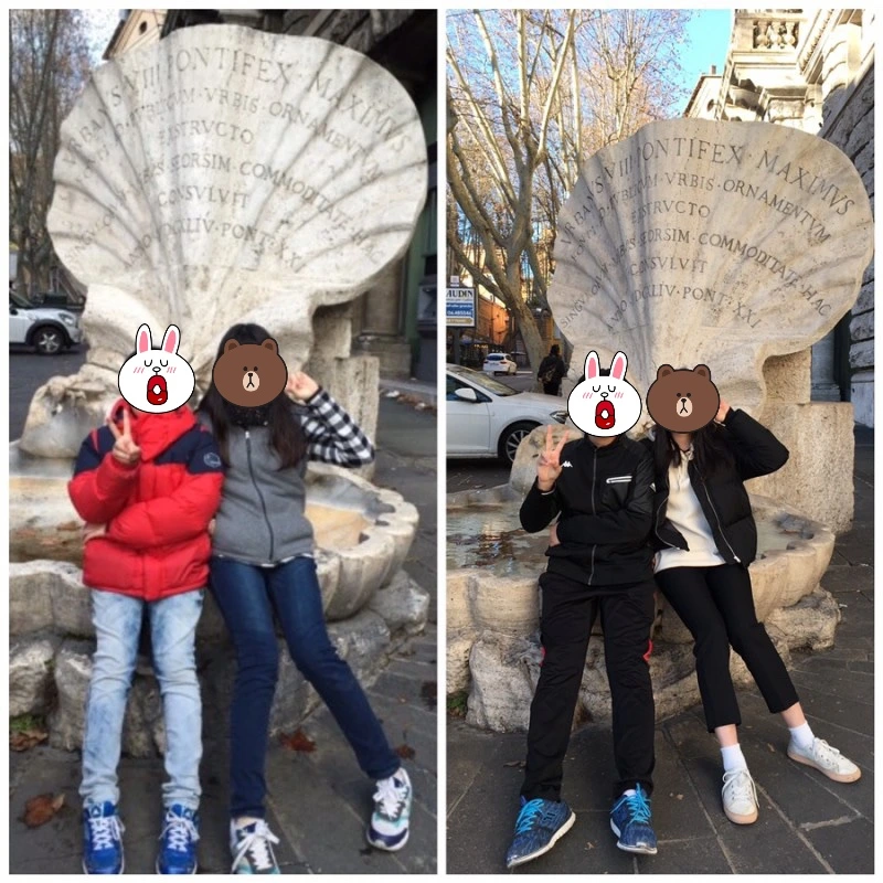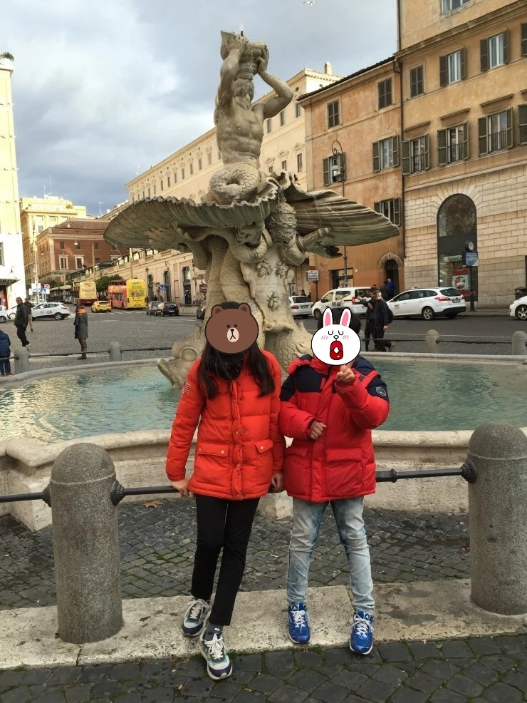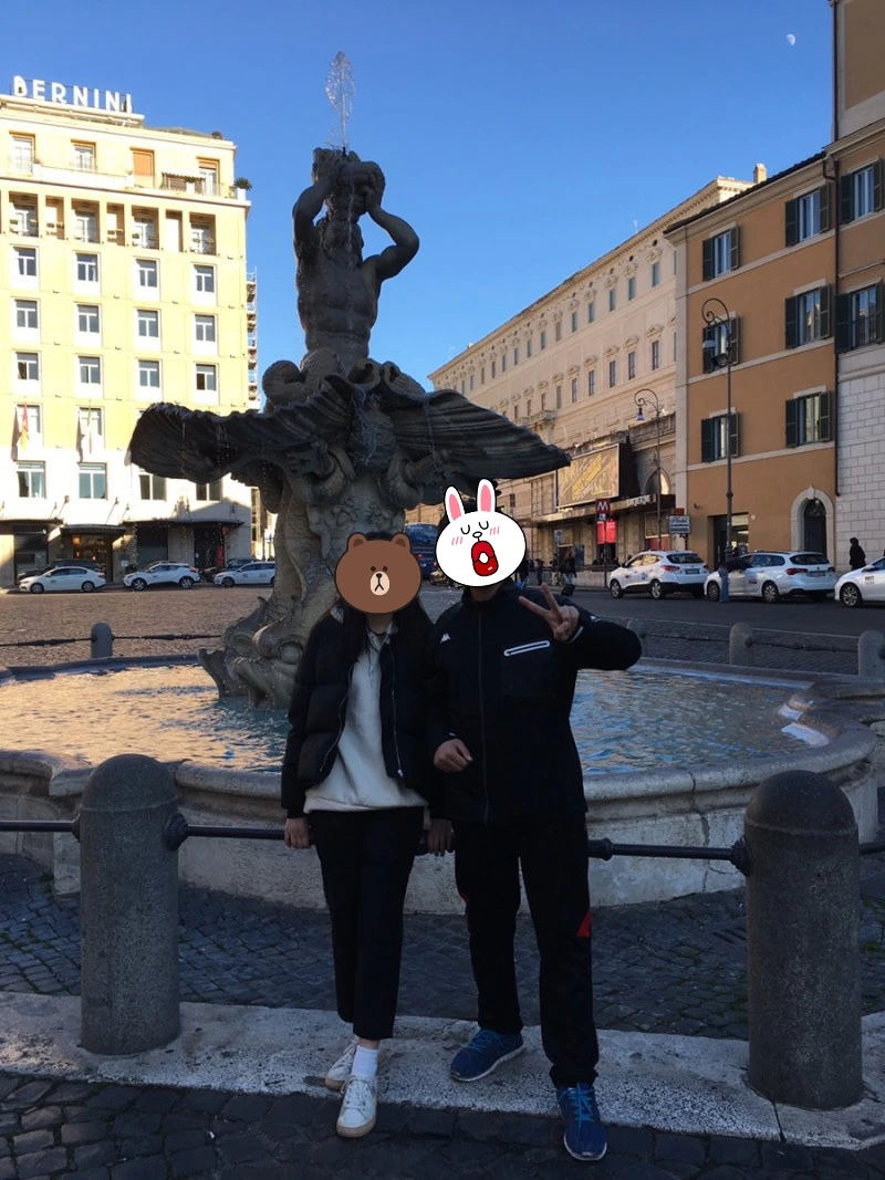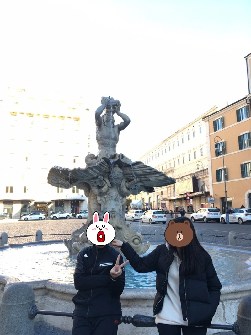 바르베리니 광장의 트리톤 분수가 너무 좋아서, 그 근처로 숙소를 잡았다. 숙소에 체크인하자마자 바로 뛰쳐나와 바르베리니 광장으로 향했다. 트리톤 분수만큼이나 애정 하는 꿀벌 분수. 현지인 할아버지께서 생수통에 물을 받아가시길 기다렸다가, 찰칵! 이제는 누나보다 훨씬 키가 커 버린 남동생이지만, 우리 집에서는 여전히 애교 많은 토깽이다.