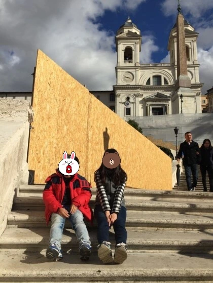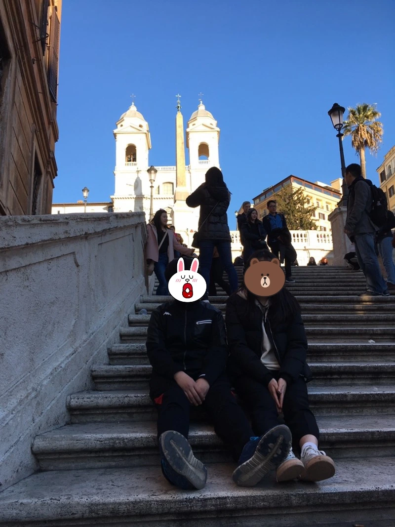 첫 로마 때는 공사하는 곳이 너무 많았었다. ‘겨울에는 관광지 보수공사를 해야 하나 보다’ 했었는데, 두 번째 로마 때는 똑같이 1월인데도 공사하는 곳이 거의 없었다. 스페인 계단마저 완전 개방이라, 얼마나 좋아라 했는지! 왼쪽 사진은 엄마한테 야단 맞고 찍었던 것이라 둘 다 울상이었는데, 오른쪽 사진은 ‘스페인 계단 공사 안 한다!! 우와!!’하며 좋아라 하다가, 표정도 이전처럼 울상으로 짓는다고, 울퉁불퉁 이상한 표정이 되었더랬지.