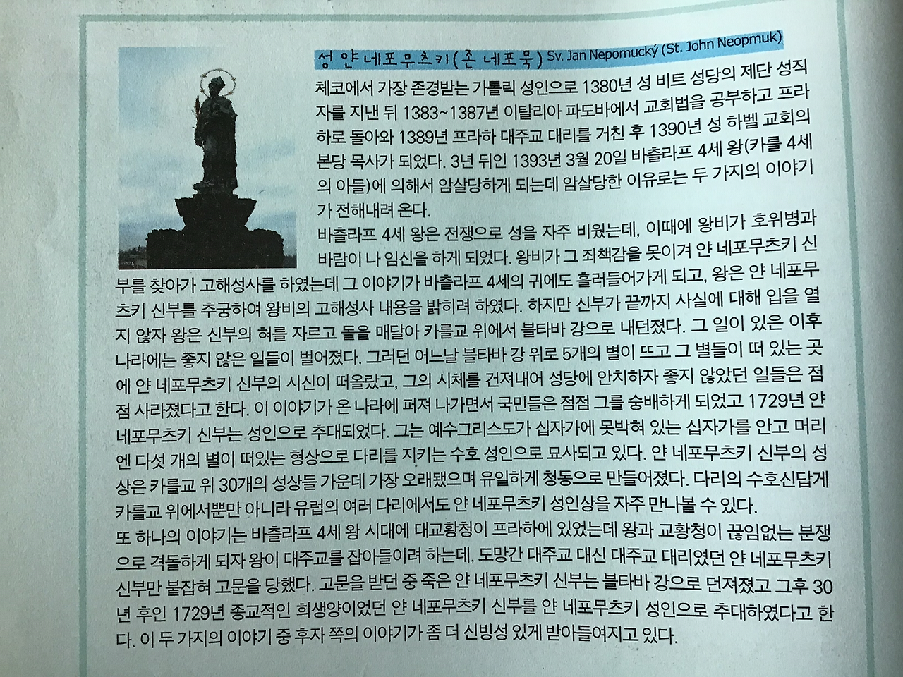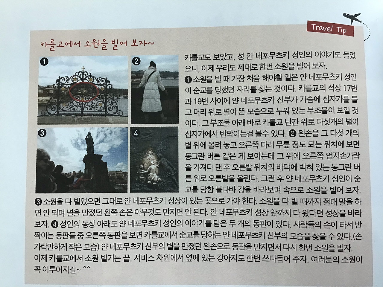 블타바 강을 가로지르는 보행자 전용 다리인 까를교 양 옆에는 총 30개의 석상이 있는데, 언제나 변함없이 주변보다 사람들이 많이 모여있는 곳이 있었으니, 바로 성 얀 네포무츠키 상 앞이었다.