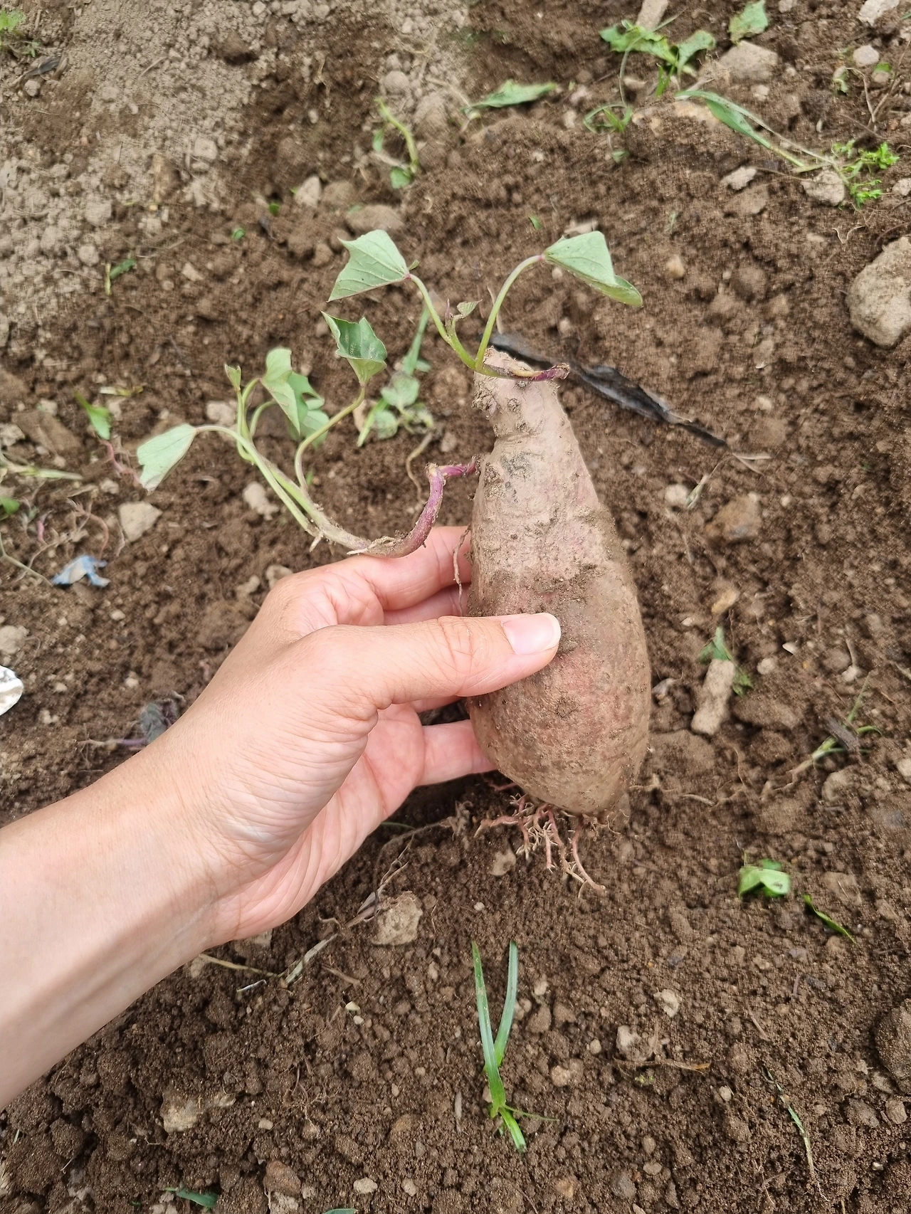 그리고 더 웃긴건 원래 고구마를 이렇게 심으면 안된다는 것이다. 밭에서 비트를 살펴보다 진짜 고구마도 섞여있다는걸 알았는데, 그냥 통으로 심겨 있었다. 원래는 고구마 순을 내서 순이 15센티미터 정도 자라면 한 마디를 남기고 잘라서 순을 심는거라고 했다.(블로그에서 10분 검색해봄). 고구마를 이렇게 심었다면 과연 비트도 올바르게 심겨 있는 것일까? 합리적 의심이 든다. 심은 사람도, 고구마인지 비트인지 몰랐던 사람도 모두 엉망진창 바보 농부들이다. 그렇지만 즐겁다.