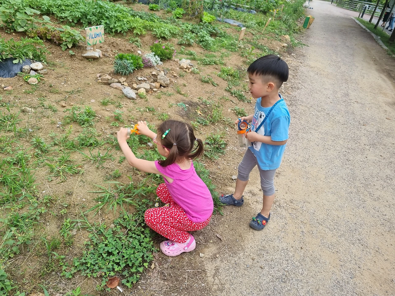 따라온 내 아들과 함께 밭을 관리하는 다른 엄마의 딸도 같이 왔다. 아파트 단지 내 화단은 정기적으로 소독을 해서 벌레가 많지 않은데, 이 밭에 오면 무당벌레를 하루에 족히 20마리는 잡을 수 있다. 신이 나서 무당벌레 채집을 하고, 가져온 간식을 나눠 먹는다. 귀농하면 매일매일 이런 일상일까? 사실 귀농할 필요도 없이 내가 사는 곳이 그냥 농촌인 셈이다.