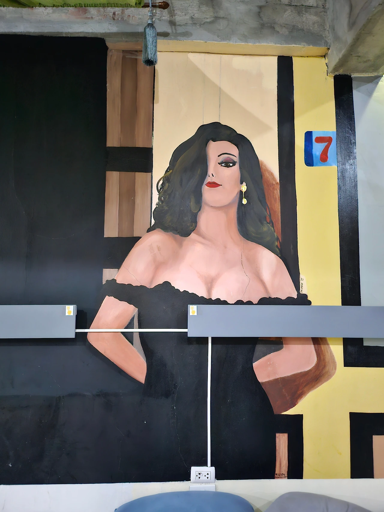 기숙사 내 방에 그려져 있는 벽화한국에서 숙소 사진을 먼저 보았을 때는 나름 디자인 호텔다운 독특한 벽화들이 눈에 띄어서 "오! 생각보다 퀄리티가 좋은 숙소네?"라고 생각했었지만 실제로 와서 보니 오래되고 낡은 느낌, 깔끔하지 못한 마감, 아귀가 맞지 않는 옷장과 서랍, 오래되어 빛바랜 수전과 칠이 벗겨진 샤워호스 등이 눈에 들어와 괴리감을 느낀 것이 사실이었다. 한국의 리모델링은 거의 새 건물처럼 다시 태어나는 수준이지만, 이 곳은 리모델링한 호텔이라 할지라도 한국처럼 완벽하게 깔끔한 수준은 아닌 것이다.