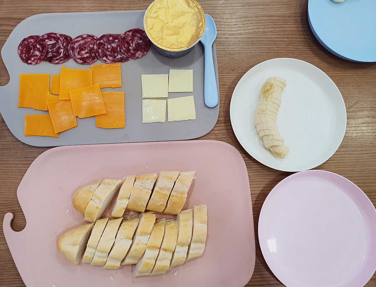 첫째가 다니는 어린이집서 아이들 간식을 직접 만드는 놀이를 자주 했었다. 그걸 보고 나도 집에서 빵을 간식으로 주면서 재료를 직접 넣어서 만들어 먹게 하고 있다. 둘째도 먹는 걸 하도 좋아해서 빵 몇 개 주면 첫째 다 먹을 때까지 조용하다.