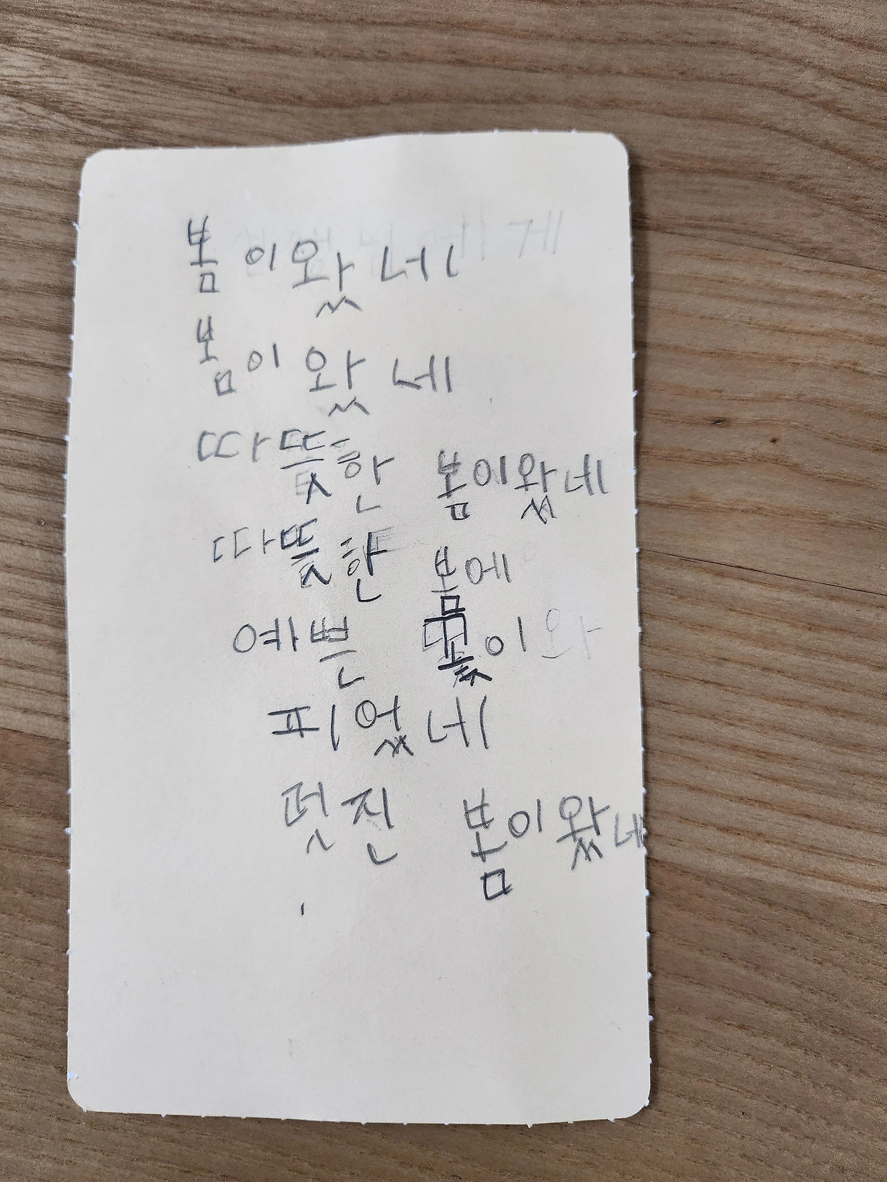 어젯밤, 첫째 아이가 갑자기 시를 썼어요.