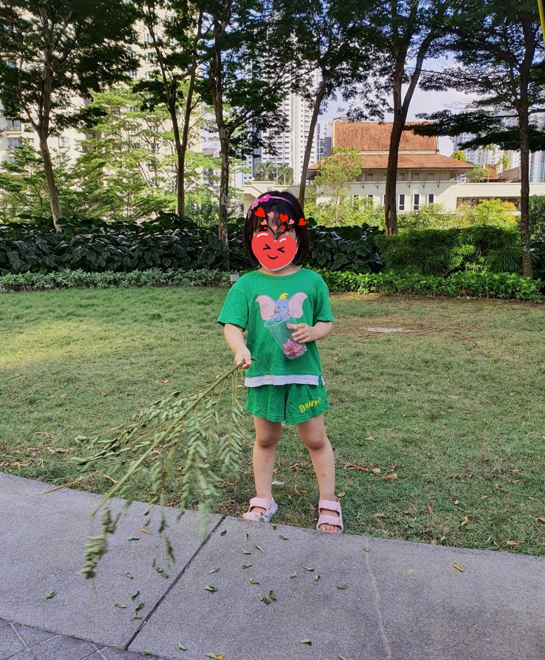하루는 주위의 풍경에 그저 감탄만 하고 또 어떤 날은 떨어진 꽃잎과 나뭇잎들로 미술놀이도 하며 이곳을 즐긴다. 둘째도 꽃과 나무에 자주 관심을 보인다. 첫째의 행동을 보고 배우는 거 같다. 우리는 이렇게 풍성한 자연 속에서말레이시아에 적응 중이다.