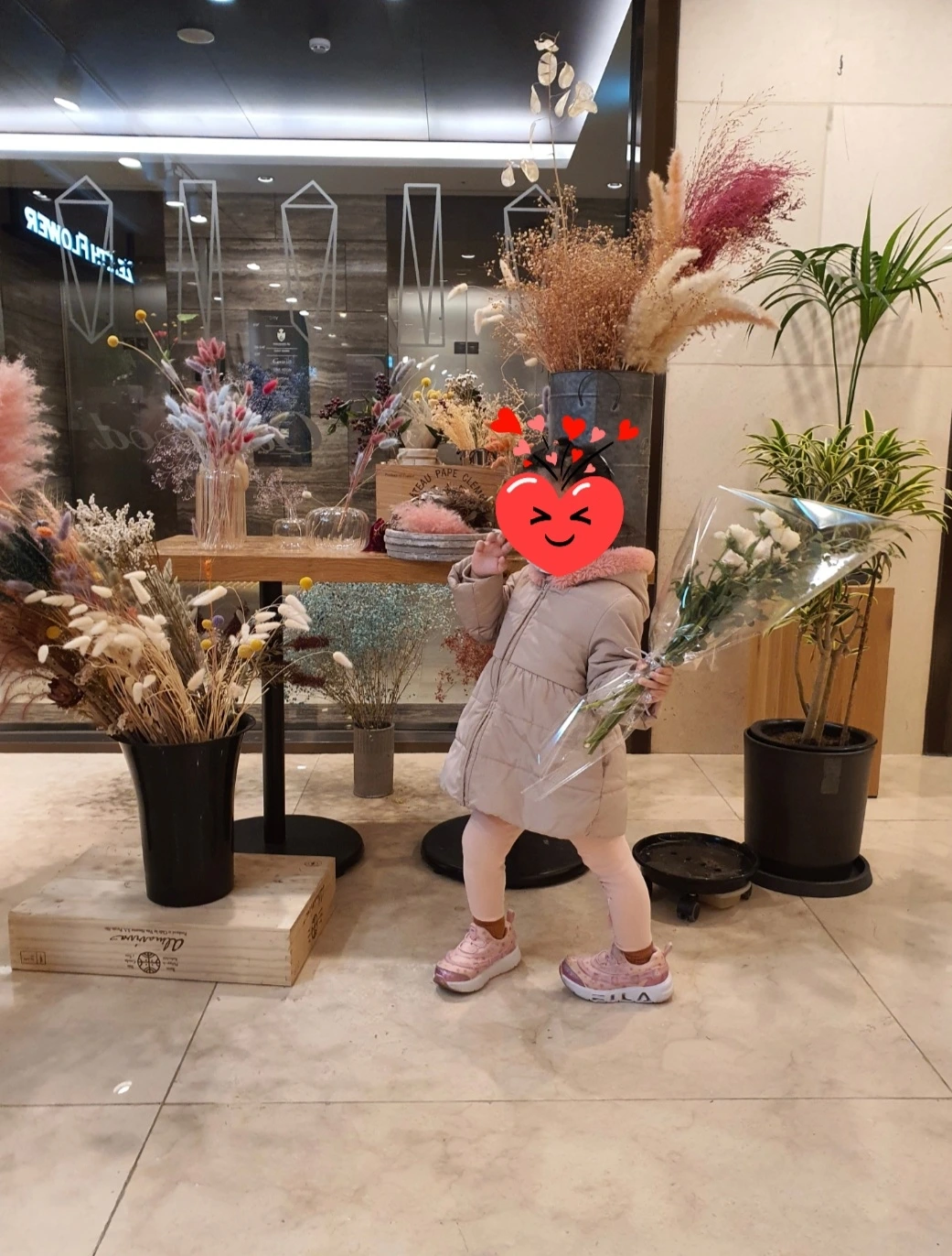 이 날부터 우리는 정기적으로 꽃집에 들렀다. 첫째가 고른 가장 예쁜 한 송이를 포함해서 2만 원 이 넘지 않는 금액으로 만들어지는 꽃다발을 보는 건 정말 즐거웠다. 사장님은 얼마 안 되는 금액이지만 늘 서비스로 자잘한 꽃들을 추가해 주셨고 그 덕분에 항상 예뻤다. 그렇게 우리의 작은 화병에 담긴 꽃은 집을 반짝반짝하게 만들며 아이의 자랑이 되었다.