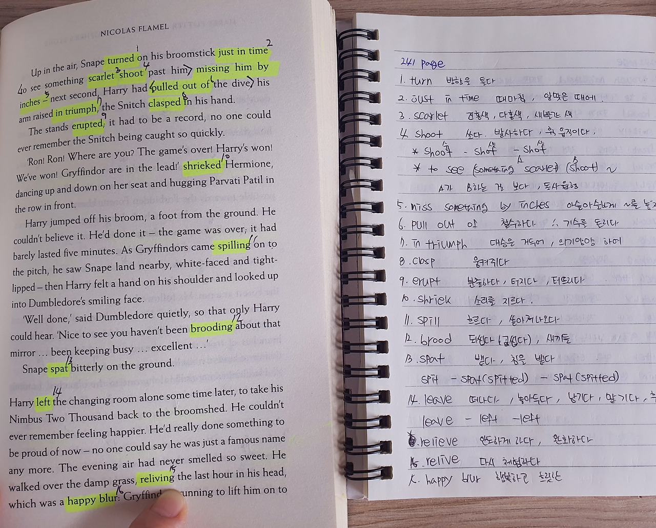 원서 읽는 방법으로 좋다는 건 많았지만 난 그냥 정확하게 읽고 싶었다. 대충 느낌으로 이해하고 넘어가는 게 아니라 단어 하나, 문장 하나 정확히 알고 넘어가고 싶었다. 덕분에 처음엔 1시간에 1페이지 읽는 것도 벅찼다. 애들 챙기고, 집안일하고 영어 공부하고 난 다음에 시간에 나면 해리포터를 읽었다. 모르는 단어를 표시하고 그 단어의 뜻을 찾고 적어두고 그래도 이해가 안 되면 문장 전체를 검색해서 다른 사람이 해석해 놓은 것들을 찾아서 읽어봤다.