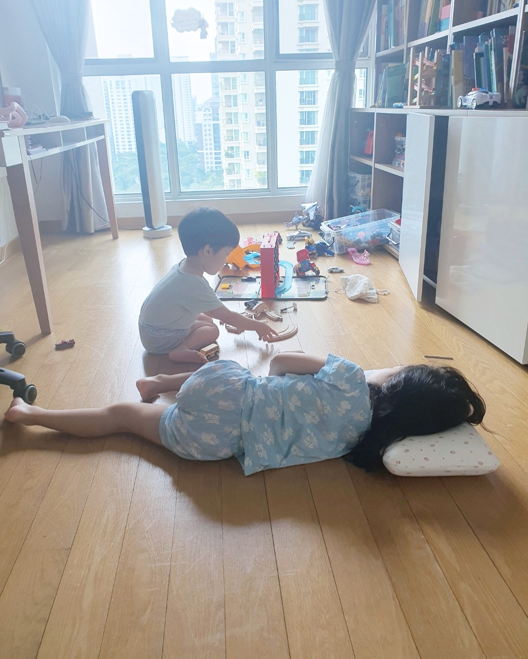 그동안은 너무 어려서 나랑 닮아서 그런 거라는 생각을 못했는데 이제 어릴 때 나의 모습이 보인다. 당황스럽고 신기하고 나도 그랬는데 잔소리만 했구나 하는 반성도 되고 마음이 복잡하다. 부모님이 이해가 되면서 아이의 마음이 동시에 이해가 된다. 결국 나도 우리 부모님처럼 텔레비전 많이 보는 거로는 잔소리를 하더라도 누워있는 거는 이해해 줘야 할 듯싶다.