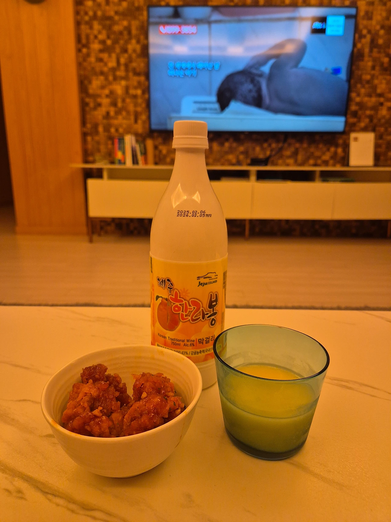 이 날부터는 혼자가 되었다. 이모가 끓여주시고간 육개장을 밥으로 먹고, 근처 오름을 구경가서 산책을 했다. 밤에는 먹다 남아 냉장고에 넣어놓은 한라봉 막걸리와 닭강정을 꺼내 티비 보면서 혼자 맛있게 먹었다.