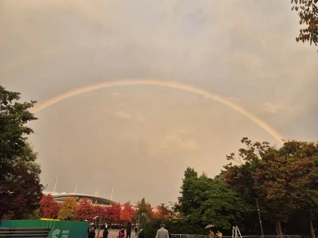 이런 제대로된 반원 무지개를 보는 날이 살면서 얼마나 될까요?