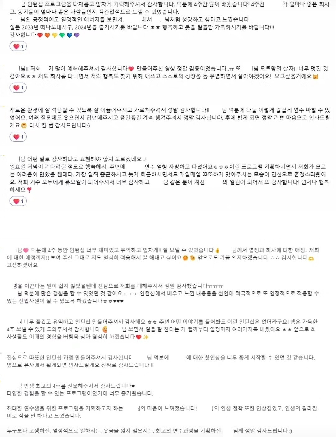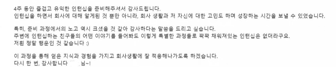 애사심을 가지세요!라는 말은 이제 의미가 없을뿐더러 내 가치관도 아니다. 함께 직장 생활을 하는 동료로서, 하루 중 가장 많은 시간을 보내는 회사에서의 삶이 수월하기를 바라는 사람으로서, 이분들이 우리 회사에 들어와서 하고 싶다고 말한 것들을 정말 맘껏 펼쳐내며 나름의 재미와 의미를 느끼며 직장생활을 하길 바랄 뿐이다. 그러한 나의 마음을 기획에서 운영까지 꽉꽉 담았는데 다행히도 내 진심이 닿은 것 같아서 나 역시 정말 고맙다.