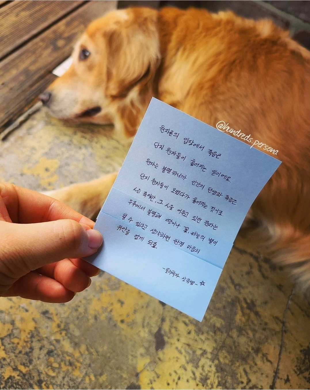휴가기간에 할아버지의 제사가 껴 있었다. 코로나로 인해 가족들이 전부 모일 수 없어 각자가 할아버지를 그리워하고 추억하는 시간을 가졌다. 그래서인지 죽음에 대해 더 많은 생각을 했던 것 같다. 삶의 유한성에 대해 자각했던 나의 첫 번째 사사로운 죽음. 할아버지를 많이 닮았고 할아버지의 사랑을 많이 받았던 나는 큰 상실감을 느꼈다. 더 이상 대화할 수 없고 더 이상 만질 수 없다는 사실이 와닿지 않았다. 크기를 알 수 없을 만큼 슬펐지만 그럼에도 불구하고 일상에 돌아와 삶을 살아가야 했다. 그렇게 일상에서 슬픔은 흩뿌려졌다. 그리고 가끔 할아버지의 기억 조각들이 머릿속에서 재생될 때면 생전에 할아버지께서 주셨던 격려와 사랑을 옅게나마 느낄 수 있다. 원자 단위로 돌아가 이 우주 어딘가에서 나와 함께 존재하고 있을 것이라는 과학의 사사롭지 않은 위로가, 나는 고맙다.