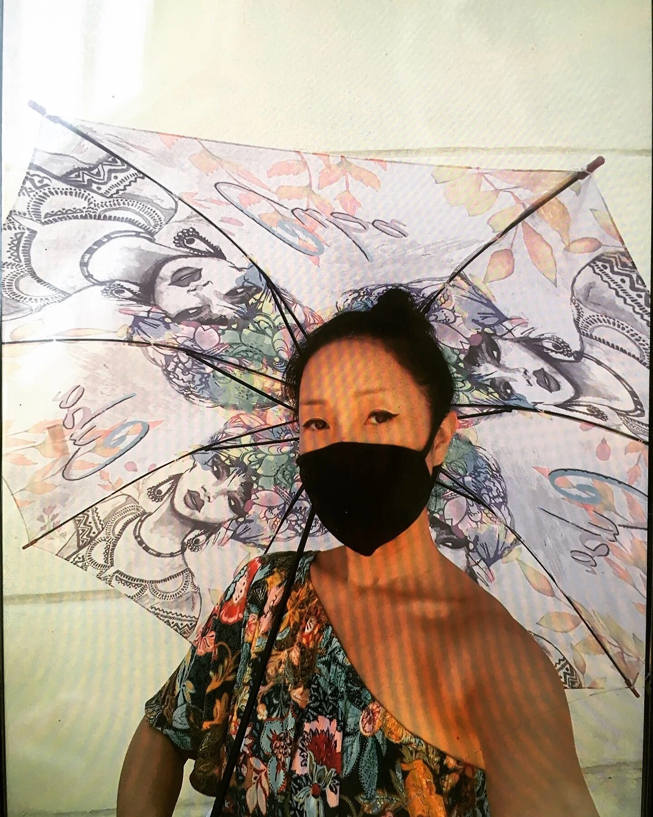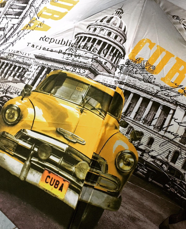 세 개의 우산들이 모두 다 예뻐서 그 자리에 서서 한참 고민을 했더랬다. 그리고 나는 그중에서 두 개를 구입했다. 접는 우산 하나와 장우산 하나. 노란 올드카가 그려진 접는 우산은 가방에 넣었고 장 우산은 바로 쓰기로 했다. 어여쁜 쿠바 언니가 멋들어지게 그려진 이 우산이 너무 마음에 들었다.