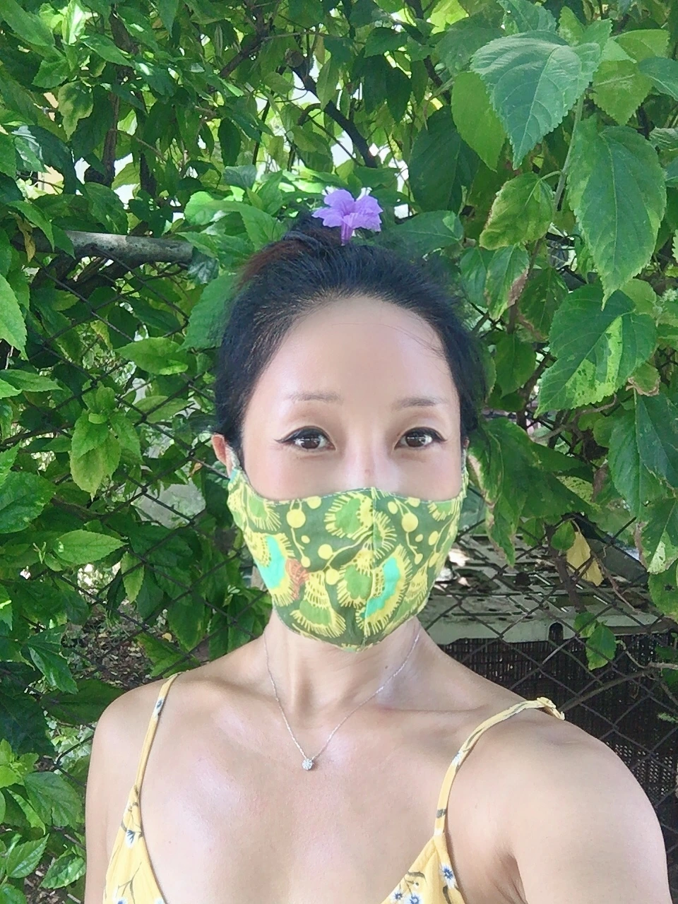 다비드와 헤어지고 우리는 다른 동네에 가서 야채를 사고는(살 게 호박이랑 오이밖에 없었다) 나온 김에 다른 동네 한 바퀴를 쭈욱 돌아보았다. 예전에 살던 동네에 와서 기분이 좋았던 남편은 꽃을 꺾어 내 머리에 꽂아주었다. 바람에 날려가 버리기 전에 꽂자마다 기념사진을 찍었다. 그리고는 아주 오랜만에 예전에 자주 가던 특급 호텔에 가 보았다.