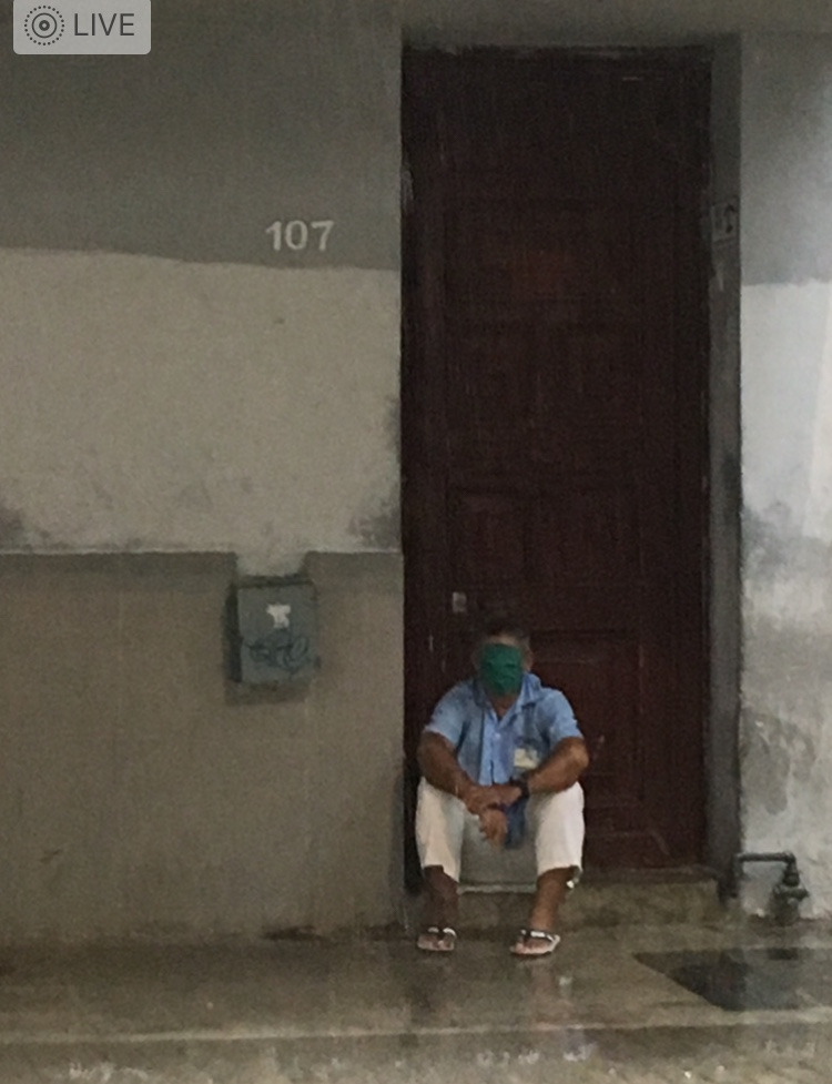 나는 남편 옆에서 쪼그리고 앉아서 쏟아지는 비를 감상하며 사진도 찍고 동영상도 찍었다. 건너편 처마 밑에 앉아서 비가 그치기를 기다리시는 아저씨도 지루하신지 마스크를 얼굴 전체에 덮었다가 눈만 보이게 했다가 하면서 나를 웃게 하셨다. 간혹 옷이 홀라당 젖은 채로 비 속을 뚫고 가는 용감한 이들도 있긴 했다. 나는 속으로 “나오면서 창문을 다 닫아놓고 나와서 정말 다행이다!’라고 생각하며 이 정도 비면 세탁실 창문 틈으로 물이 꽤나 들어와 있겠다는 추측도 해 보았다.