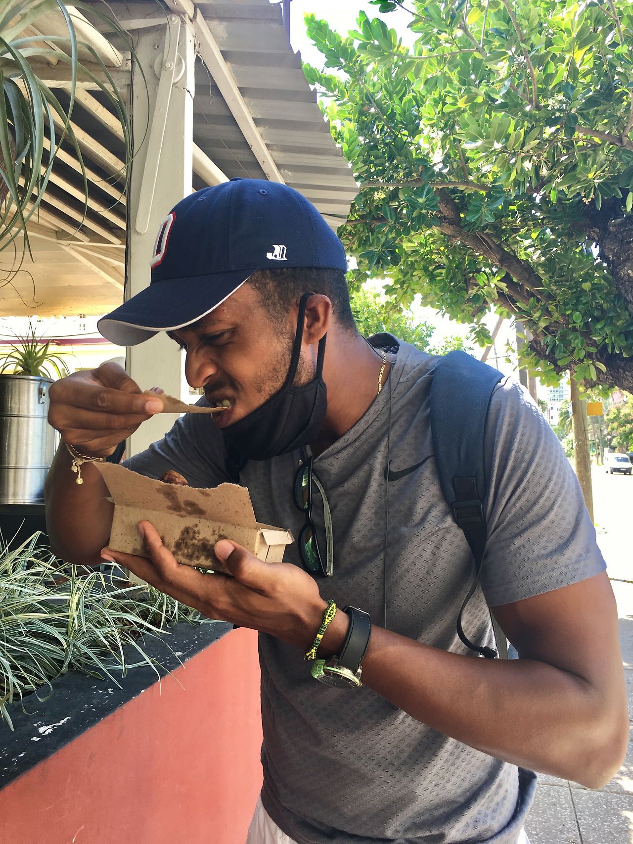 쿠바의 유명한 상자밥을 손과 종이 스푼으로 열심히 드시는 귀인님