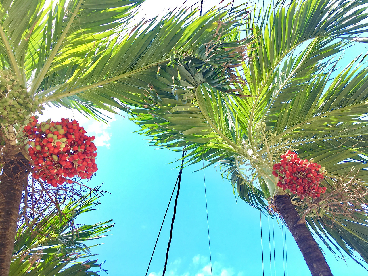 남편도 나도 씁쓸한 미소를 거두고는 말레꼰을 벗어나 안쪽 동네로 걸어가 보았다. 사람들이 복잡 복잡한 그곳에서 작은 야자나무에 열린 색이 아주 고운 빨간 열매들을 보았다. 먹는 건 아니라고 남편이 말했다. 초록과 빨강의 조화는 언제 보아도 참 예뻤다. 게다가 하늘에서 내려오는 파란빛은 그 둘과 멋들어진 조화를 이루었다. 그래서 크리스마스의 색깔이 초록과 빨강일 수도 있겠다는 생각이 들었다.