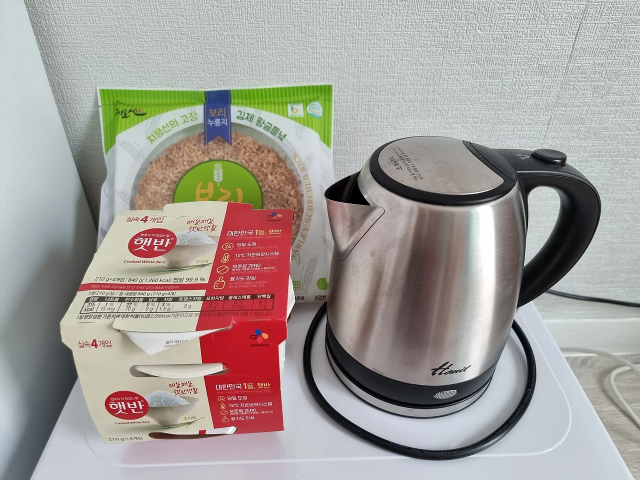 냉장고에는 동물복지 달걀에 첨 보는 진지향, 생수와 맥주가 준비되어 있었고 찬장을 열어보니 미숫가루 한통에 차도 한통이 놓여 있었다.