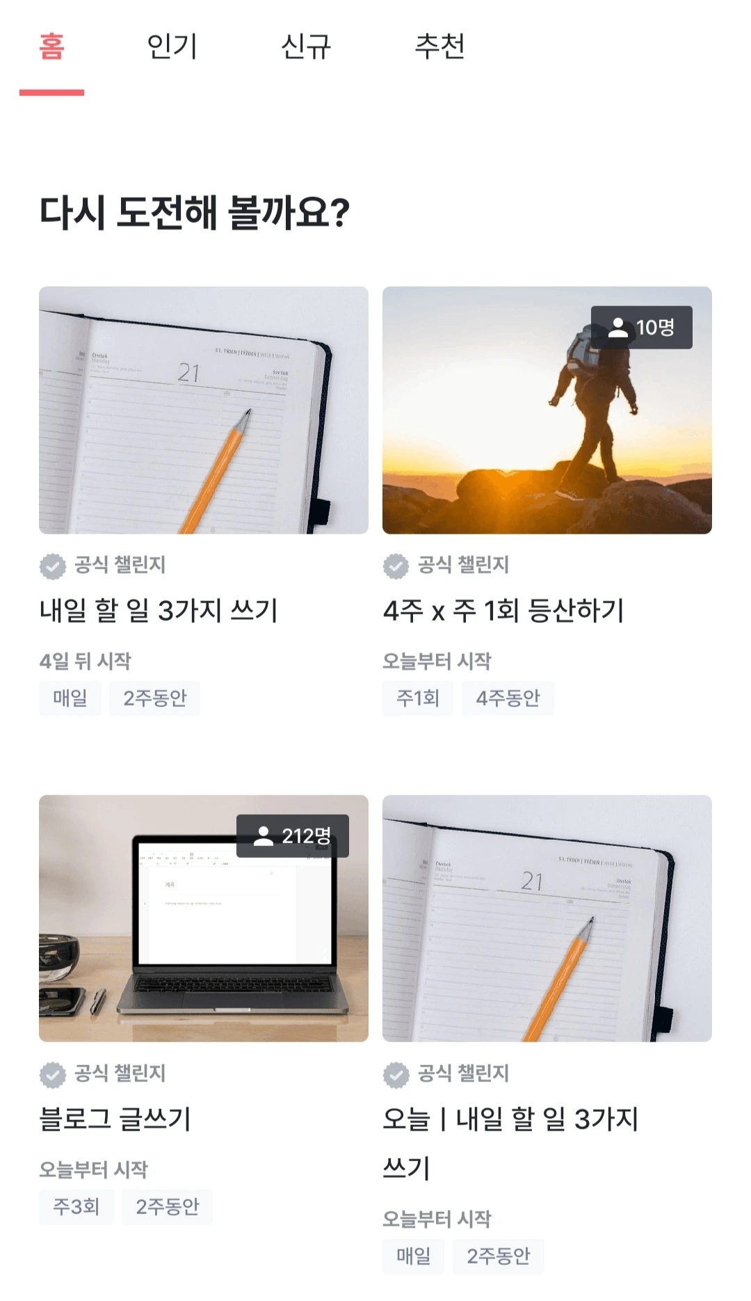 내가 해보니 효과가 좋아서 혹시라도 혼자 무언가를 이루는 게 힘드신 분들은 챌리저스 애플리케이션을 한번 이용해 보실 것을 권하는 바이다.