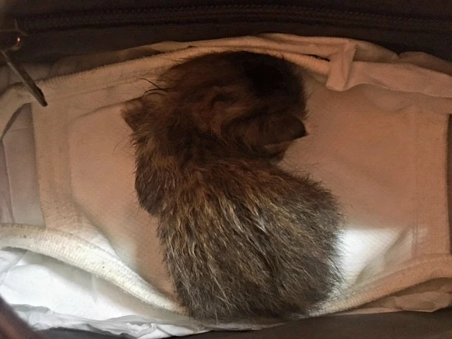 린조에게 집도 생겼어. 내가 한국에서부터 들고 다니던 작은 아디다스 가방이 있는데 그 안에 휴대용 티슈 팩 하나를 넣고(매트리스) 그 위에 수건이랑 휴지를 깔아서 이불처럼 따뜻하고 푹신하게 해 주었어. 앗, 면 마스크가 있길래 그걸 맨 위에 깔아주었어. 그랬더니 린조가 편한지 아주 잘 자. 하루 종일 내 손에 들고 있을 수는 없잖아. 린조에게 집을 마련해 주고 나니 나도 맘이 훨씬 편해졌어.