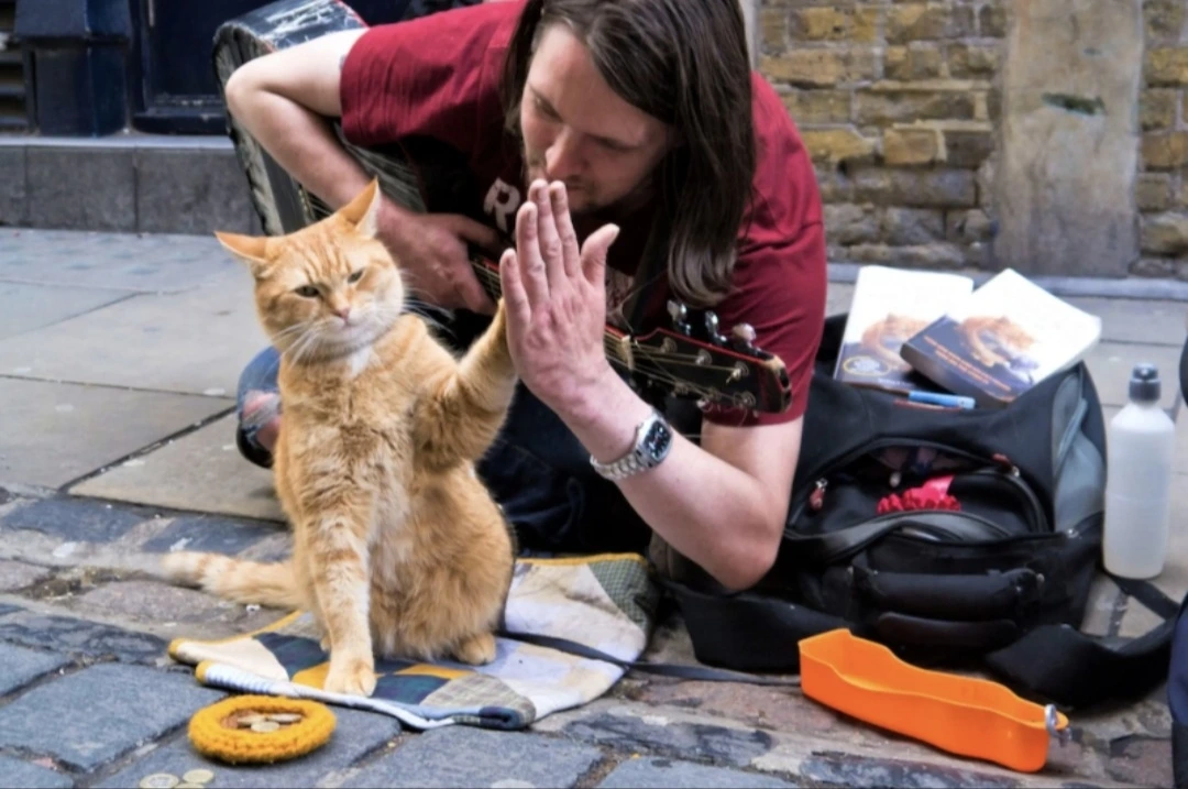 자신은 못 먹어도 밥은 굶기지 않았던 제임스. 그런 제임스와 밥을 신문기자가 신문에 실었고 급기야 사람들이 그들을 올린 영상이 유튜브에서 조회수 100만을 넘으면서 그들은 스타가 되었다. 그리고 그걸 본 출판사에서 제임스를 찾아와 둘의 이야기를 담은 책을 내게 되었고 그 책이 800만 권이 팔리면서 인기를 얻게 되자 노숙자였던 제임스의 삶이 180도 달라져버렸다. 그리고 그들의 이야기가 영화로까지 제작이 되었다.