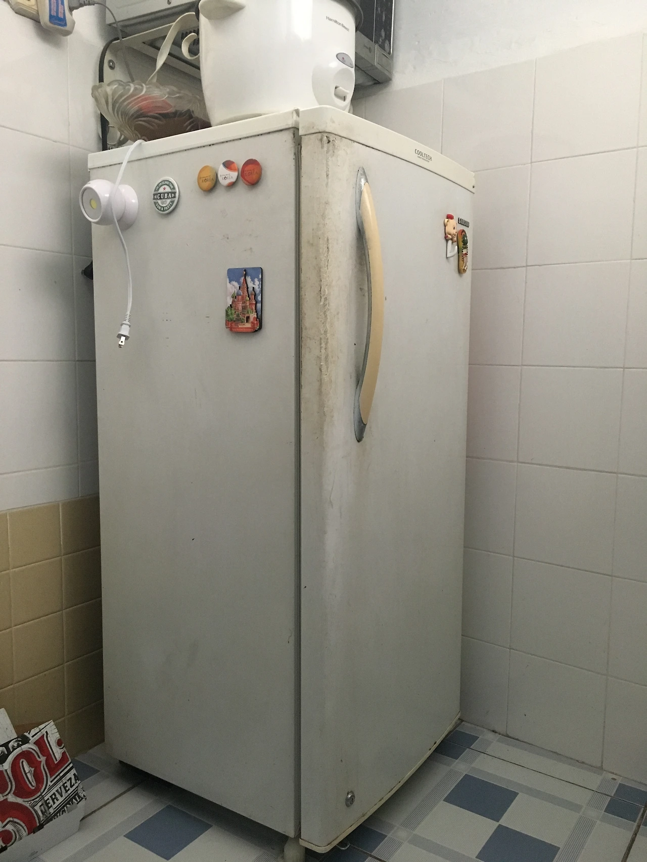 가격에 비해 말레꼰 뷰가 나오는 위치라든가 아바나 시내인데도 꽤나 안전하고 이웃들이 조용하다는 훌륭한 장점들로 인해 장기로 거주 중인 이 집도 살아보니 깔끔해 보이는 외관과 달리 여기저기서 이런저런 문제들(샤워, 싱크대, 옷장 서랍, 에어컨, 선풍기 등등)이 끊이지 않고 나오는데 그중에 최고봉은 바로 이 쪼그만 냉장고이다.