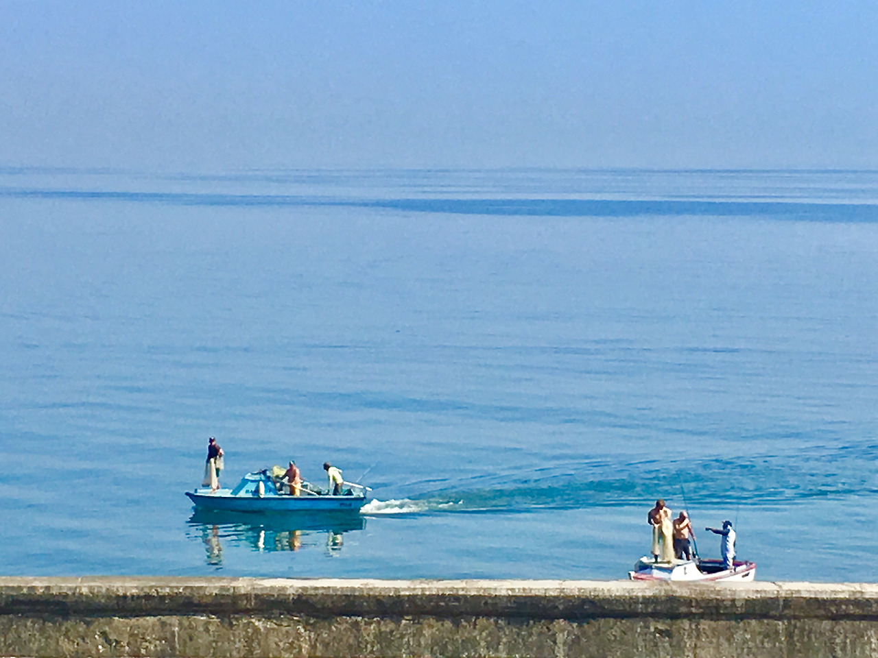 말레꼰에서 낚시를 못하게 되자, 말레꼰 안 바다에 통통배들이 보이기 시작하더니 어느 날 새벽에는 저 멀리 모로성 근처에 통통배 10대 정도가 소복이 있는 게 보였다. 물고기 명당자리인 우리 집 앞에도 며칠 내내 툭 치면 톡 하고 곧 쓰러질 것 같은 통통배들이 여러 척이 보였는데 그 작고 허술한 배에 4명이나 타고 낚싯대와 그물로 물고기를 낚고 있었다. 그런데 경찰과 군인이 오더니 말레꼰 근처에 있는 통통배로 낚시하는 것도 안 된다고 하는 걸 보았다.
