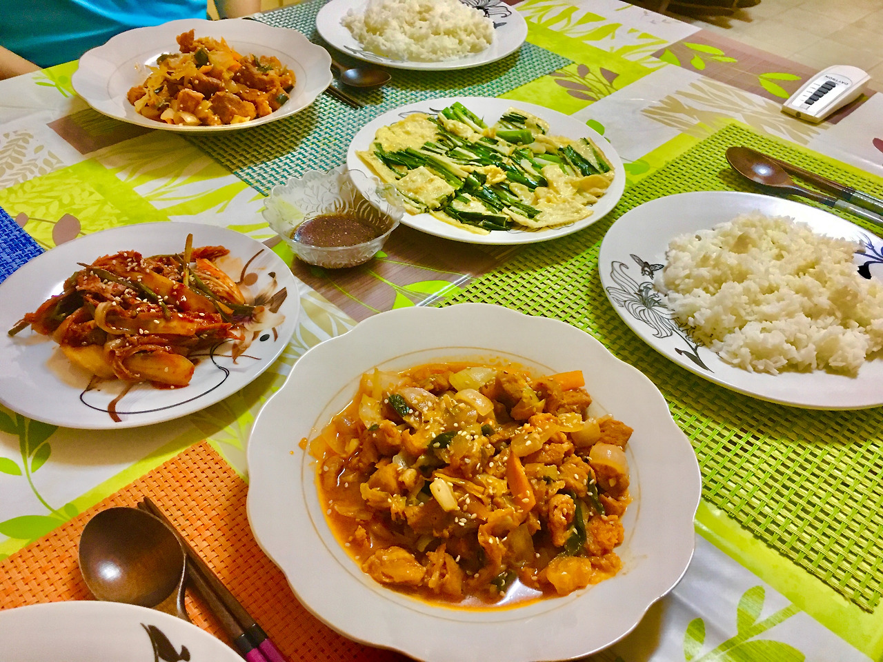 일단 교실로 다시 들어가야 했던 나는 그 친구에게 우리 집 주소만 알려주고는 저녁을 기약했다. 그때는 내가 쿠바에 거주하는 한국인들을 거의 모를 때라 오랜만에 한국 사람을 만나니 괜히 들떠서 없는 살림에 제육볶음과 밀가루가 없어서 계란만 올린 파전에 지금 보면 엉성했던 겉절이까지 정성껏 준비했다.