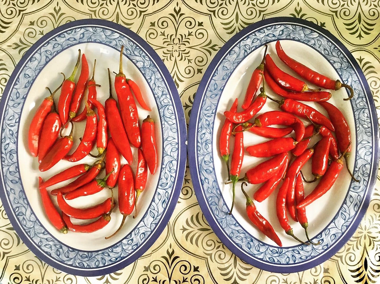 말린 고추 접시와 빈 그릇 두 개를 가져와서 식탁 위에 놓고는 자리에 앉았다. 일단 꼭지를 다 땄다. 그리고 가위로 말린 고추 하나를 세로로 반으로 자른 다음 그 안에 있는 씨를 손가락으로 쭉 빼내었다. 이 고추가 맵다는 건 요리할 때 한번 넣어봐서 알았지만 그냥 고추니까 매운 거라고 생각했다. 그리고 지금까지 나는 고추를 말려본 적도 씨를 빼 본 적도 없어서 그게 나에게 어떠한 영향을 줄지는 당연히 예상을 하지 못했다. 그래서 아무렇지도 않게 그냥 씨를 손가락으로 쑥 밀어서 뺀 것이었다. 무식하면 용감하니까.