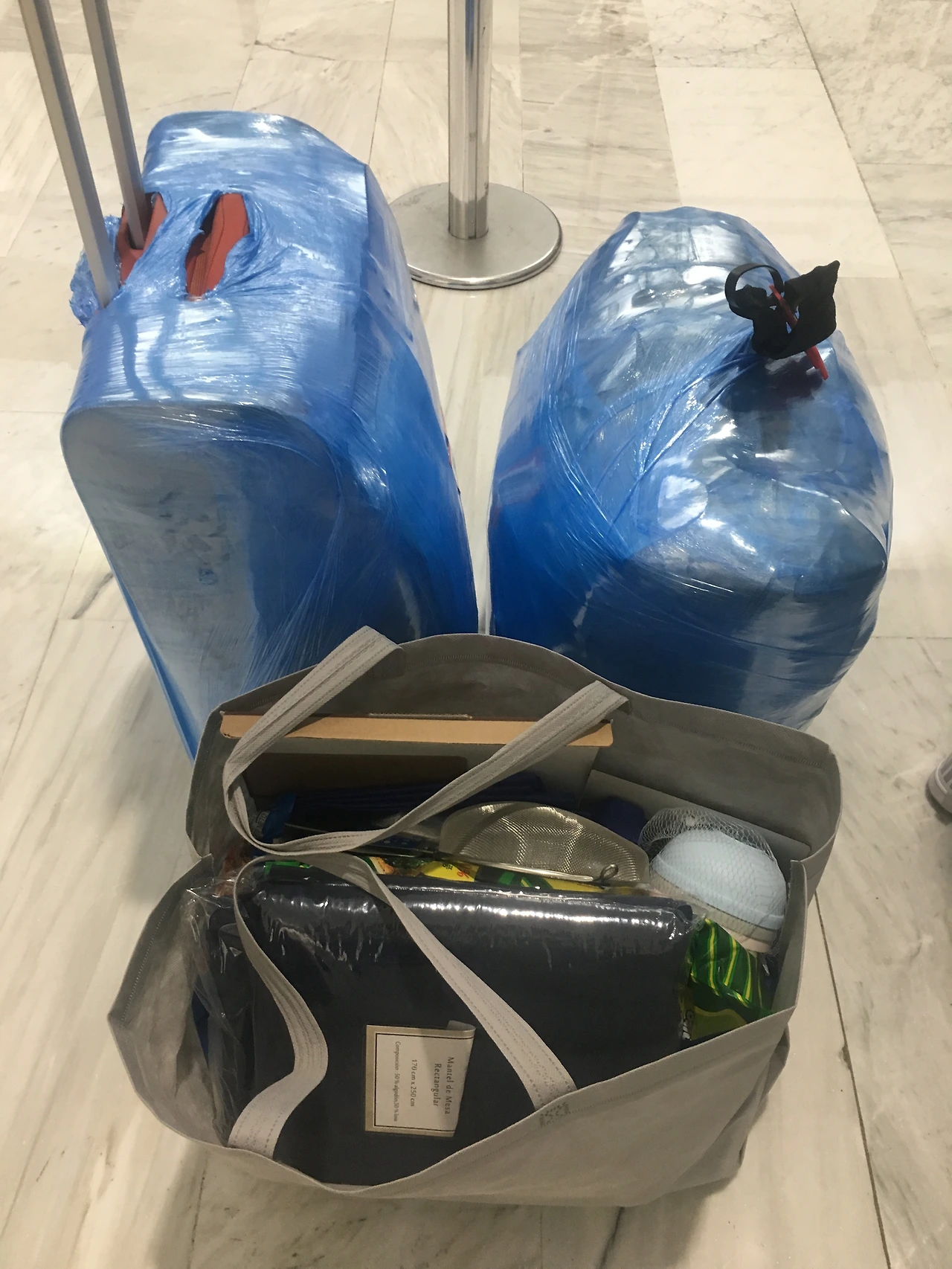 나는 아저씨에게 수하물 가방을 랩핑해야 하니 그리고 가자고 했다. 가방 두 개를 다 랩핑 할 예정이었다. 랩핑 하는 곳에 도착을 해서 수하물 가방 두 개의 무게를 재어 보았다. 둘 다 25킬로가 넘었다. 인터젯 항공은 수하물 하나의 무게가 25킬로그램이어서 두 가방의 합계가 50킬로가 되어야 하는데 내 가방의 합은 55킬로그램이었다. 어쩐담… 하고 잠시 고민을 하다가 가방 하나는 25킬로에 맞추고 하나는 30킬로에 맞추기로 했다. 랩핑 하시는 분의 얘기로 가방 무게 최대가 30킬로라고 했다. 게다가 핸드캐리 가방 두 개도 무게를 확인해 보니 12킬로가 넘었다. 핸드캐리는 최대 10킬로 까지였다. 그런데 지금은 핸드캐리 가방을 신경 쓸 시간이 아니었다. 일단 수하물 가방 2개를 옆으로 가져가서 열고는 무게 조정을 해 보았다. 이 가방에서 저 가방으로 물건들을 옮기고는 지퍼를 닫고 무게 재기를 두 번 정도 하고 나니 가방 하나는 25킬로, 다른 하나는 30킬로가 되었다. 언른 랩핑을 했다.