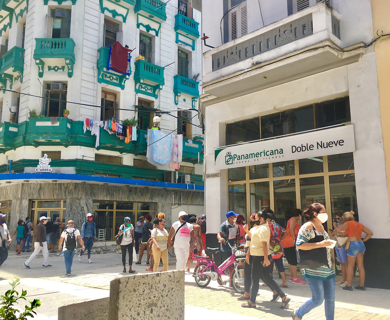한참 줄이 줄어들지 않자 나뿐만 아니라 모두들 무슨 일인지 내부가 훤히 들여다보이는 카운터를 유심히 살펴보고 있었다. 캐셔 아주머니가 카드 결제를 하다가 실수를 했거나 손님 카드에 문제가 있어서 계산한 걸 취소하고 새로 하는 것 둘 중의 하나라고 생각했다. 이십 여분을 좀 더 기다리자 문제가 해결이 된 듯 그 커플은 상점을 조용히 떠났고 다음 사람인 나에게 들어오라며 손짓을 했다. 나는 빠른 걸음으로 땡볕을 지나 상점 안으로 들어갔고 손 세정제로 손을 닦은 후 물건들을 살펴보았다. 그새 물건들이 많이 줄어든 것 같지는 않았다. 쿠바인들 중에 외화 카드를 소지하고 있는 사람들이 아직은 많지 않다는 증거이기도 했다.