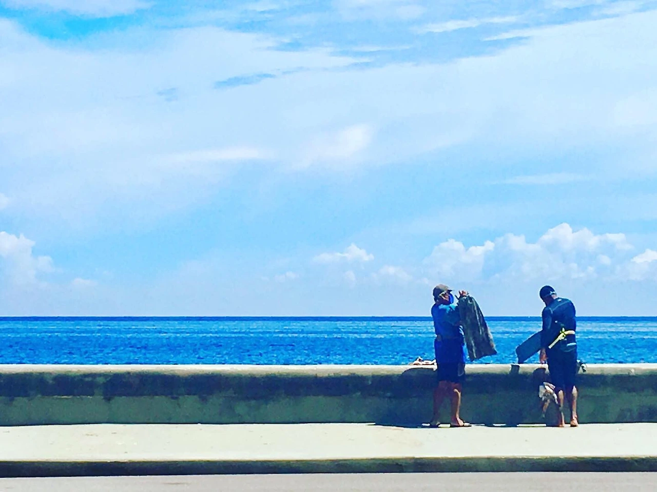 팔 건지 직접 먹을 건지는 모르겠지만 두 코난은 그 날 꽤나 행복했겠지? 지천이 바다인 섬나라 쿠바에는 생선을 판매하는 가게를 찾기가 몹시 드물다. 지금까지 딱 한 번 보았나? 생선을 직접 본 건 아니고 생선이 들어온다며 기다리는 사람들만 잔뜩 본 기억뿐이다. 남편 말로는 쿠바에는 큰 어선이 없다고 했다. 예전에 하나가 있었는데 문제가 생겨서 지금 물고기 배들은 모두 개인들이 운행하는 아주 작은 통통배밖에 없다고 했다. 그리고 그 통통배는 우리 집 창문에서도 종종 구경을 하고 있다.