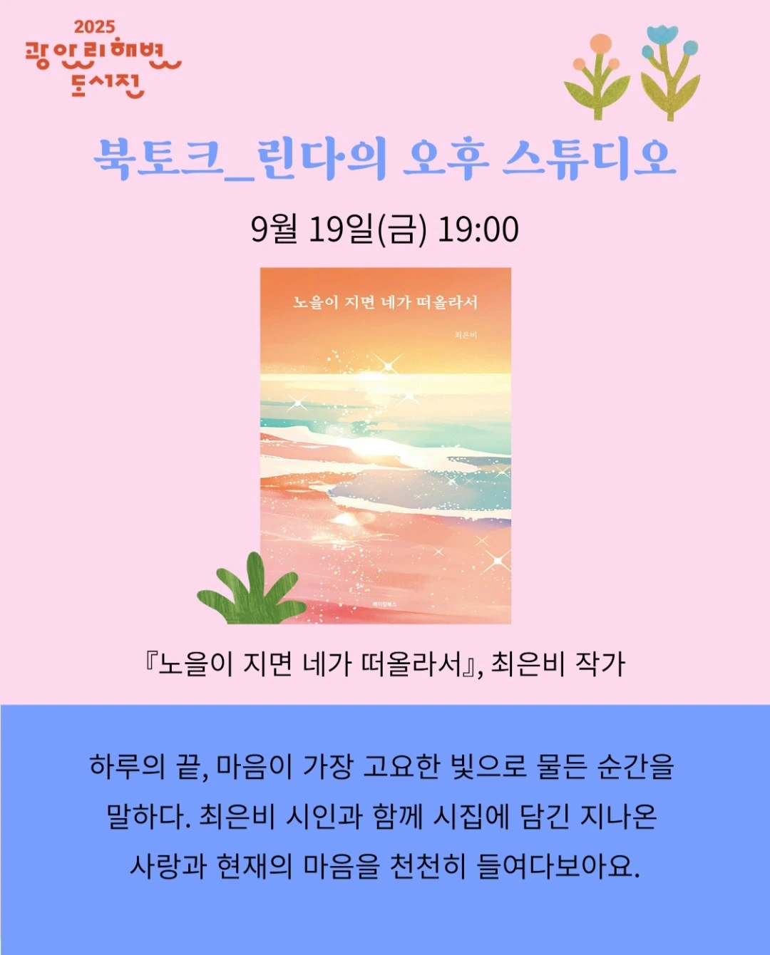 오는 9월 18일(목)부터 23일(토)까지 열리는 광안리 해변도서전에 린다의 오후 스튜디오도 함께합니다.