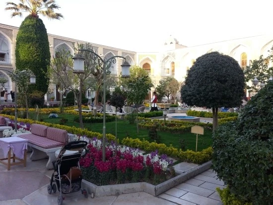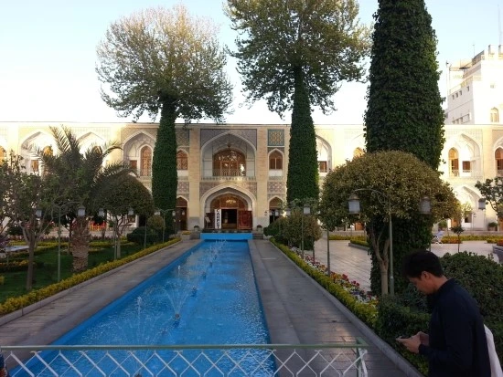 Hasht Behesht 궁 정원을 걷다 보니 정원과 연결된 곳에 유명한 아바시호텔이 나온다. 감히 숙박은 엄두도 못 내고 구경이나 하자고 용감히 로비를 통해 안마당으로 들어가 보는데 소문대로 그 규모가 대단하다. 과연 이란 최고의 호텔이란 명성에 걸맞다. 300여 년 전의 카라반사라이(대상 숙소)를 개조해 만들었다는 이 호텔은 로비도 호화스럽지만 단연 이 마당이 압권이다. 세상에 이런 큰 안마당을 가진 호텔이 또 있던가?