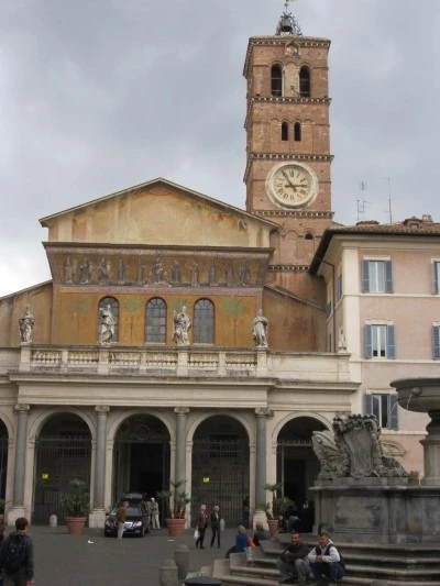 다시 큰길을 건너 찾은 곳은 산타 체칠리아 인 트라스테베레(Santa Cecilia in Trastevere) 교회. 트라스테베레에서 가장 유명한 장소이다. 3세기 경에 처음 지어진 이 교회의 지금 모습은 12세기에 재건된 것이다. 이 교회의 특별함은 로마 시내의 화려한 바로크 교회와 다름에 있다. 내외부가 모자이크로 장식된 보기 드문 중세교회의 모습이다. 주위 건물들 틈에 가려져 있어 멀리서 잘 보이지 않는다. 갑자기 불어난 사람들을 따라 좁은 골목길을 걸으니 널따란 광장이 나온다. 광장 가운데 8 각형의 중세 스타일 분수가 물을 뿜고 있고 그 앞에 황금색 모자이크 파사드가 돋보이는 중세교회가 종탑을 이고 서 있다.