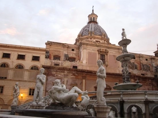 바로 건너편에는 팔레모 바로크를 잘 보여주는 산타 카테리나 교회와 계단 모양의 호화로운 프레토리아 분수와 광장이 나온다. 분수 주위에는 꽤 많은 수의 나체 조각상들이 이채롭다. 프레토리아 광장 옆으로는 벨리니 광장이 이어진다. 광장에는 900년의 세월을 이고 있는 2개의 교회가 나란히 서 있다. 동서 문화의 공존의 역사를 보여주는 마르토라나 교회와 아랍풍의 3개의 돔을 이고 있는 산카탈도 교회. 12세기 중엽 기독교국인 노르만 시대에 지어졌지만 노르만과 아랍 양식이 섞인 노르만 아랍(Norman Arab) 건축물이다. 유감스럽게도 마라토라나 교회는 보수 중이라 교회 내부를 들어가 볼 수가 없다.
