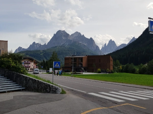 거리는 별로 멀지 않지만 무거운 캐리어가 두 개나 있어 호스텔 직원에게 택시를 좀 불러 달라고 했더니 난처한 표정이다. 여기 택시는 일반 택시와는 다른 8인승 승합차인데 둘만 타더라도 8인 요금을 내야 한단다. 할 수 없어 R 호텔에 전화를 했더니 금방 주인이 차를 가지고 와 픽업을 해준다. 호텔은 가족이 경영하는 듯한 소규모 호텔인데 깨끗하고 살레 풍의 아름다운 호텔이다. 문을 열면 전망이 탁 트이고 발코니도 있어 좋은데 단지 앞으로 차들이 지나다녀 좀 시끄러운 것이 흠이다. 주인장의 배려로 이른 체크인을 하고 방에 짐을 둔 체 오늘은 피스칼리나 계곡(Val Fiscalina)으로 가기 위해 호텔 바로 앞의 정거장에서 446번 버스를 탄다. 피스칼리나 계곡으로 갈려면 세스토(Sesto) 지역의 후니비에 몬테 엘모(Funivie Monte Elmo, 독일지명 Helm) 정거장에 내려 다시 440번 버스로 갈아타야 한다. 440번 버스는 10분 만에 피스칼리나 계곡(Val Fiscalina) 입구에 우리를 내려준다.