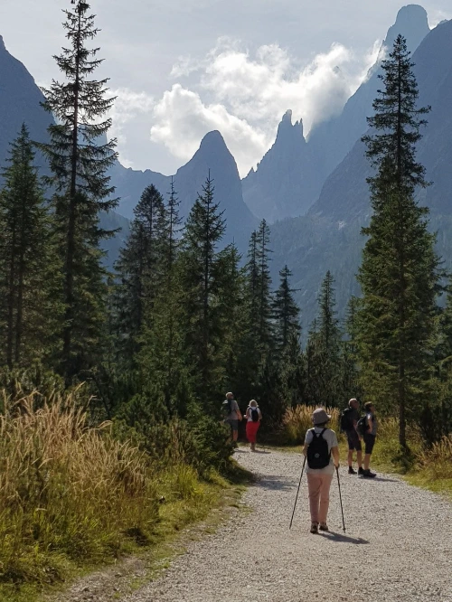 굳이 구분하는 것이 우습지만 트레킹과 하이킹은 무엇이 다른가? 통상 트레킹은 잘 다듬어진 길을 백팩을 메고 1~2일간 다소 고생스럽게(?) 걷는 것이라면, 하이킹은 가벼운 차림으로 하루 또는 몇 시간을 편하게 걷는 것일 게다. 하이킹이면 어떻고 트레킹이면 어떤가? 늦여름 아직도 다소 따가운 햇살을 받으며 이런 아름답고 호젓한 알프스의 산길을 걸을 수 있다는 것은 돌로미티가 우리에게 주는 크나큰 선물이다. 동부 돌로미티가 주는 또 다른 선물은 대부분의 지역에서 케이블카를 탈 필요가 없다는 것이다. 서부 오르티세이 쪽은 가는 곳마다 케이블카를 타야 되어 그 비용이 만만치 않다. 그런데 동부 쪽에는 거의 케이블카를 탈 필요가 없고 대중교통으로도 쉽게 접근할 수 있는 곳이 대부분이다.