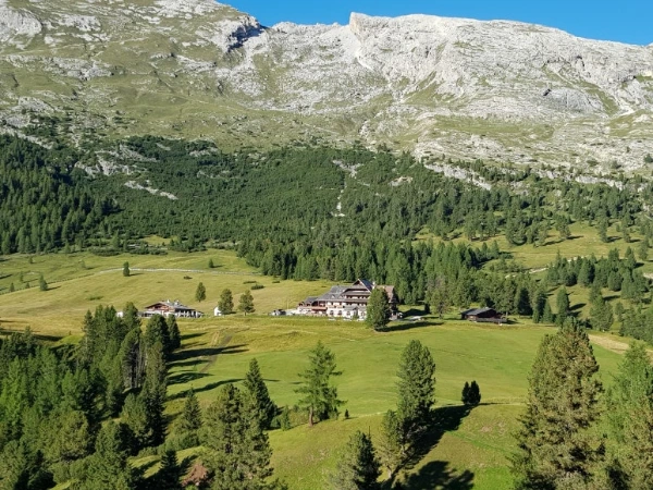 우리는 돌아오는 길에 피아짜 평원에 있는 단 하나의 호텔(Hohe Gaisl Hotel)에 일부러 들려 점심을 먹는다. H 호텔은 내겐 잊을 수 없는 추억의 호텔이다. 4년 전 돌로미티 동서를 잇는 롤러코스터(RCT) 트레일을 혼자 걷는 도중 세네스 산장(Rifugio Sennes)을 출발하여 길고 힘든 코스를 10시간 이상 걸어 매우 지친 상태로 늦은 시각에 피아짜 평원에 내려왔다. 더 이상 걷기가 힘들어 피아짜 평원의 첫 번째 산장인 피아짜 프라토 산장(Rifugio Piazza Prato)으로 들어갔지만 빈 침상이 없었다. 다음 산장인 발란드로 산장까지는 1시간을 더 가야 하는데 거기에도 빈 침상이 있다는 보장이 없었다.