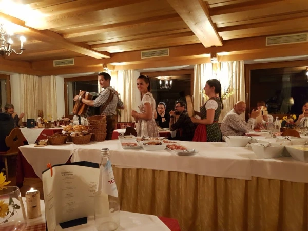 남티롤 전통 복장을 한 악사와 종업원들이 하나씩 전통 악기를 들고 나와 악기를 연주하고 흥을 북돋운다. 사람들도 모두 나와 같이 어울려 춤을 추고 노래한다. 이런 분위기에 익숙하지 못한 우리에게도 다가와 악기를 주며 같이 흔들어 달라며 손을 내민다. 자그마한 식당에는 아코디언과 더불어 요들송이 울려 퍼지고 생전 처음 보는 온갖 남티롤 민속악기들이 총출동하여 특이한 소리들을 자랑하고 있다. 우리의 돌로미티에서의 마지막 밤을 축하해 주는 것인가? 우리는 몇 잔의 와인에 벌써 취해 얼굴이 붉어지고 흥겨운 노랫소리에 맞추어 손뼉 치기에 바쁘다. 이렇게 돌로미티의 마지막 밤이 깊어 가고 있었다.