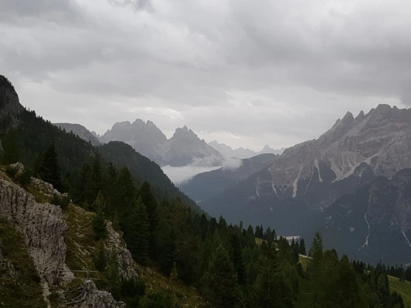 발란드로 산장 부근에도 여러 곳의 트레일이 있지만 우리는 더 이상 전진을 멈추고 산장 벤치에 앉아 여유롭게 차를 마시며 한가한 시간을 즐긴다. 산장 아래로 내려다 보이는 먹구름이 가득한 돌로미티의 모습도 오늘따라 더욱 멋져 보인다. 우리는 발란드로 산장 주변에서 충분히 쉰 후 왔던 길을 되돌아간다. 조금씩 비가 내리곤 하지만 걷기에는 아무런 문제가 없다.