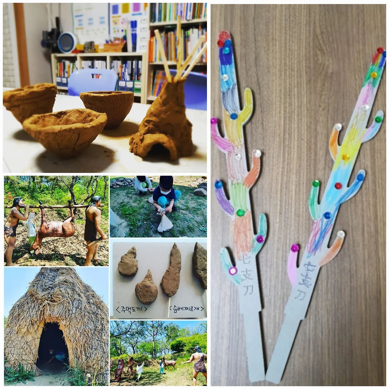 처음 시작인 구석기, 신석기, 청동기는 학창 시절 열심히 공부했던 부분이었기에 자신 있었다. (삼국시대부터 인물과 사건이 엉키는 많이 부족한 엄마다.) 구석기 박물관에 가서 직접 돌을 갈고 쌓다가 지푸라기와 나무젓가락으로 움집도 만들고, 금은박지로 청동액세서리를 만들어 대장놀이를 했다. 함께 놀이를 해서인지 아이도, 나도 재미있었다. (요즘 박물관은 어린이관이 따로 있는 곳도 많고, 체험하는 곳도 많더라.)