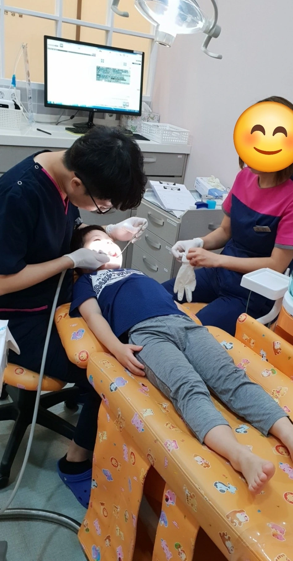 의사와 치위생사의 도움으로 충치치료는 우는 시간의 반도 채 되지 않아 끝났다. 치료 내내 옆에 서서 아이의 손을 잡고 입으로는 쉴 새 없이 다독이며 혹여나 치료에 방해가 될까 눈치 보느라 온몸이 굳어있던 나도 그제야 힘을 빼본다.