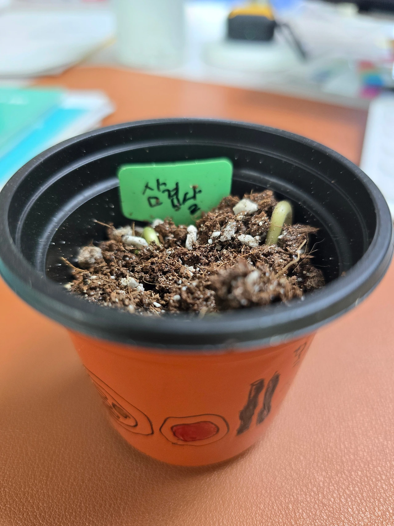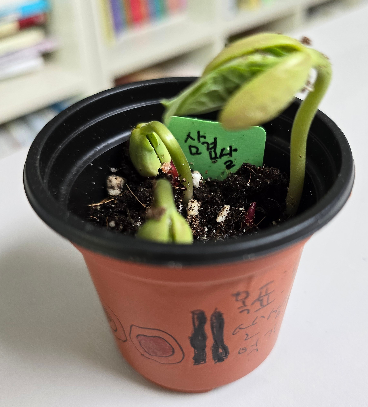 하며 반가운 마음에 흐뭇한 표정으로 아이의 화분을 받아 들었다. 화분을 꾸미고, 이름표를 만들어 꽂아 물을 흠뻑 뿌린 흙을 하나하나 살펴보며 아이에게 뭐라고 칭찬을 해 줄까 고민을 하고 있는데 2호가 먼저 말을 꺼낸다.